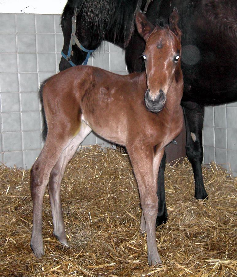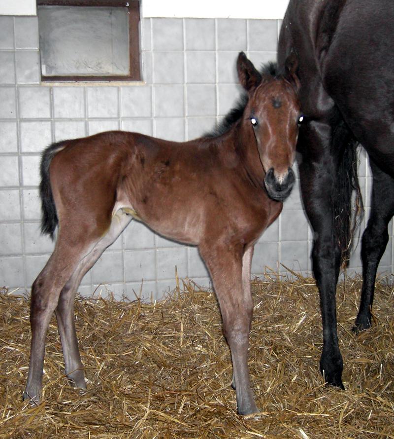 Føllet er ligesom faderen brun uden nogen form for aftegn.