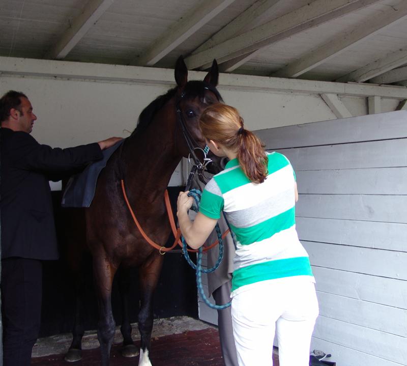 Under et besøg til banens bookmaker fredag eftermiddag, fik vi øje på træner Sir Mark Prescott`s - Head traveling lassie – og hun kunne berette at en af deres heste allerede var blevet slettet og med åndeløs spænding spurgte vi om hvilken en ? Det var SOUVENANCE (Hernando), som var en af med favoritterne i BONGO BELLO`s løb, så stemningen steg nærmest til uanede højder, samtidig med at man havde lidt ondt på Kirsten Rausing`s vegne, som jo ejer hoppen, der havde fået feber efter ankomsten til Køln.
