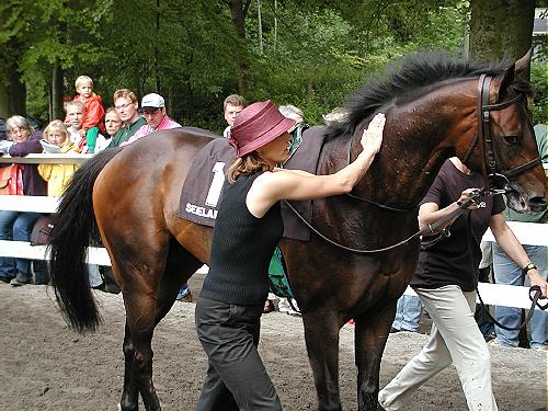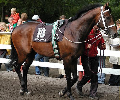 Allerede i paddocken, hvor vi kunne beundre 14 veltrænet og velplejet heste, var der et meget tydeligt tegn om hvilken vej at løbet skulle gå.