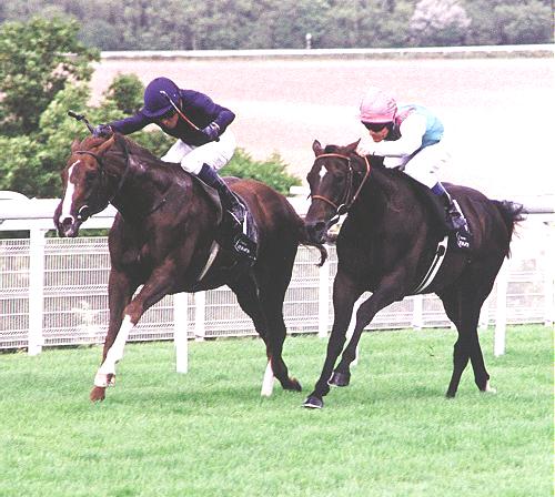 Først blev de to Godolphin stjerner SAKHEE og FANTASTIC LIGHT henvist til mindre placeringer og derefter kom Queen Anne Stakes vinderen KALANISI farende og fik overtaget på "The Giant", men endnu udviste hesten denne fantastiske kampånd og han fik fanget KALANISI (Pat Eddery) tilbage til en meget kneben sejr og med SHIVA (T. Quinn) på tredjepladsen.