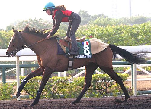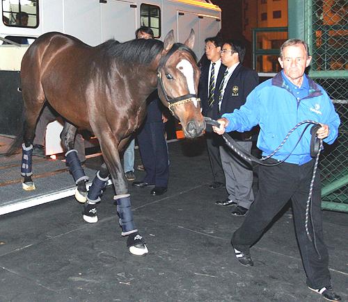 Stald Wildenstein`s gode hoppe VALLEE ENCHANTEE var en rigtig flot vinder sidste år og den Elie Lellouche trænede hoppe er ankommet til Hong Kong (se billede), for at forsvare sine og de franske farver på næste Søndag. Vi vil komme med rapporter her på siden om løbene op til den store dag.