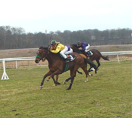 JOLLY BOY som er trænet af Elisabeth Gautier, vandt et enkelt løb i tre starter sidste år og halvbroderen til MUFASA ser ud til at have udviklet sig rigtig godt under vinteren og hesten står stadigvæk anmeldt i 2000 Guineas og Dansk Derby. MORE SEELAND så klar ud i paddocken og blev spillet til favorit, men har stadigvæk sin første sejr til gode. Den meget omtalte ALKADEM havde en mindre god dag og sås aldrig med chance og en blodprøve i de nærmeste dage skal afgøre om hesten var helt kurant på dagen.
