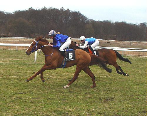 Dagens største jubelscener blev set, da den nye fynske import TEN TWENTY TWO (Kim Andersen) på det allersidste galopspring, fangede den gode debutant EKO STARDUST, lige på målstregen i et meget tæt opløb, hvor LUXORLINE på tredjepladsen ligeledes var godkendt.