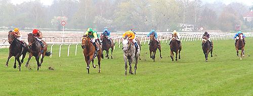 Allerede ind i opløbet var der kun fire heste i løbet og foran var JUBILATION - MAGIC FACT og BINARY FILE allerede arrangeret i en indbyrdes kamp, som den sidstnævnte så ud til at have fordelen i, men lidt efter nærmede den - "grå skygge" - sig meget hurtigt.