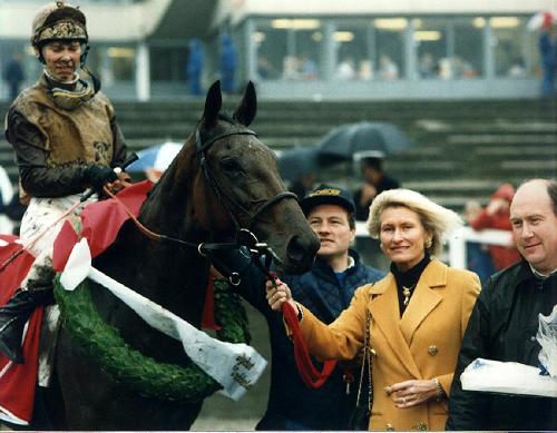 RECENT THERM (Persian Bold - Maiden`s Walk/Tower Walk) og Silke Pieters efter sejren i Valpreløb 1993 på Jysk Væddeløbsbane.