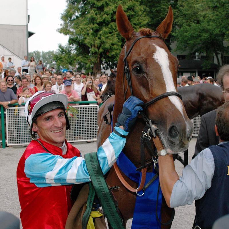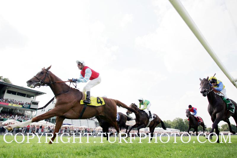 Foran kæmpede ALMERITA stadigvæk heroisk og de andre havde svært ved at få fat i hende, men Miguel Blancpain havde fået LAVEROCK op i top gear og så lynende farlig ud udvendigt og parret var nåede frem i spidsen da både ALMERITA og ikke mindst LORD OF ENGLAND leverede et kontra angreb på franskmanden, som bevirkede i, at jockeyen i form Andrasch Starke, kunne bringe den Mario Hofer trænede hingst først over stregen, til en forholdsvis sikker sejr, før LAVEROCK der akkurat holdt andenpladsen før den flot fightende ALMERITA og med FIGHT CLUB et hoved væk på fjerdepladsen.