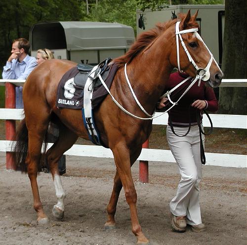 CHANTELLE Hun er en rigtig god hoppe som har sin egen aktion imod sig og banen i dag var absolut ikke nogen hjælp for hende. Jeg har bange for, at vi desværre aldrig får set hendes virkelig klasse, idet aktionen er ineffektiv som den er. Selv om det er meget tidligt i hoppens liv, kan jeg ikke lade være med at tro på, at hun bliver en kanon avlshoppe senere hen.