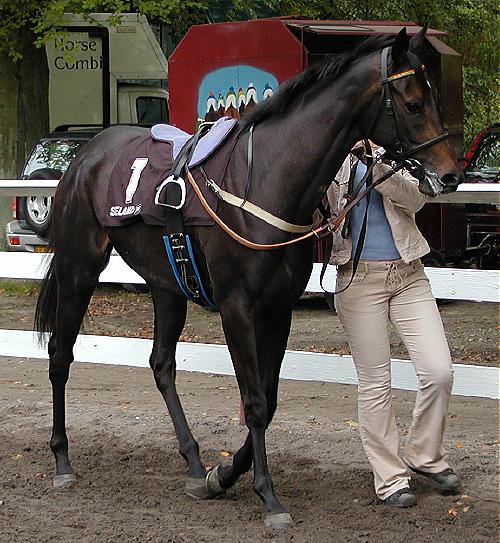 WOLFHOUND datteren er en rigtig lækker hoppe, men hun ser ikke ud til at have udviklet sig meget under vinteren. Jeg er samtidig lidt i tvivl om, at CANTEMERLE vil stå distancen under et "true run race", men hun har bestemt hurtigheden i kroppen.