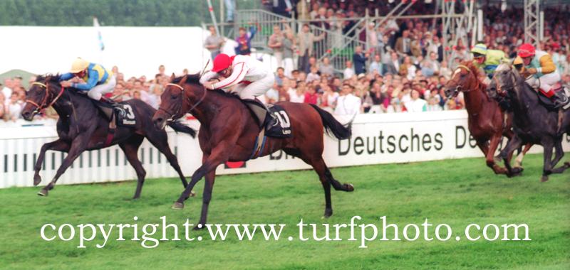 LANDO startede selv treogtyve gange og vandt de ti af løbene og heraf var der syv Gruppe 1 sejre og det er blevet til en samlet præmiesum på € 2.892.803 og den største sejr var nok Tysk Derby i 1993, hvor den slog heste som MONSUN (Königsstuhl) og STERNKÖNIG (Kalaglow), som ovenstående billede viser.