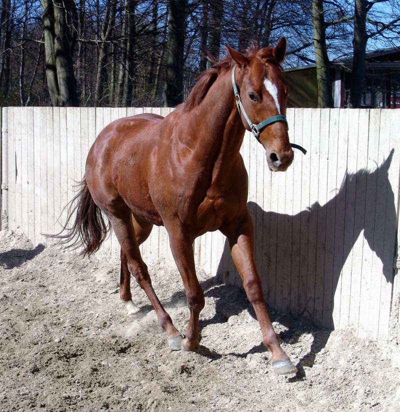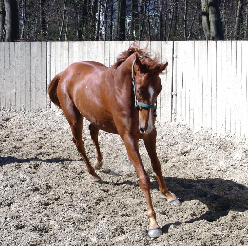 I år er hun så klar med sit første afkom og det er en fuks vallak efter CAJUN CADET (Cadeaux Genereux), der er i træning hos Helle Christensen, der mener at den vil være klar til årets første to års løb, når det løber af stablen. Vi har fanget et billede af AFRODITE sønnen i sandkassen.