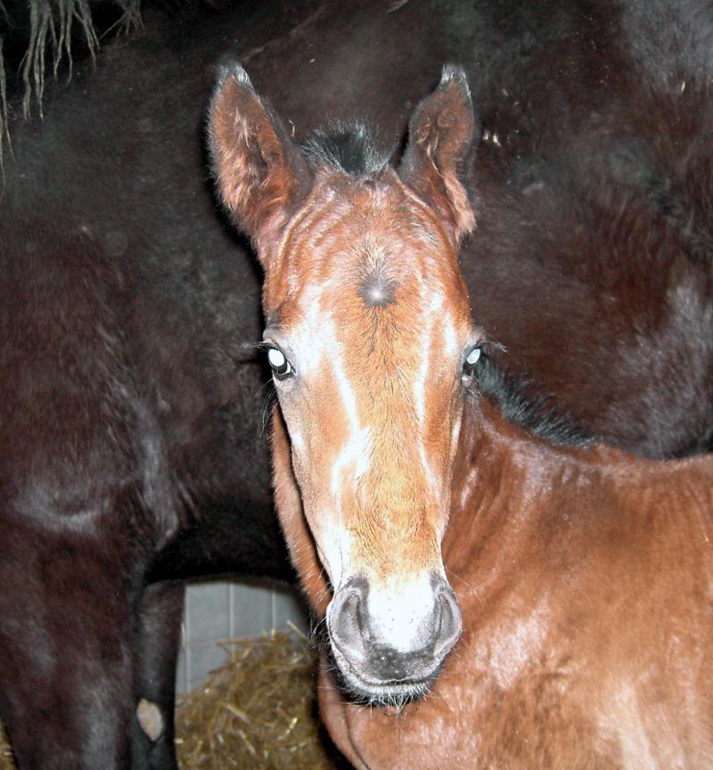 Føllet er ligesom faderen brun uden nogen form for aftegn.