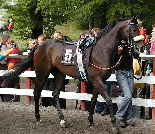 Allerede i paddocken, hvor vi kunne beundre 14 veltrænet og velplejet heste, var der et meget tydeligt tegn om hvilken vej at løbet skulle gå.