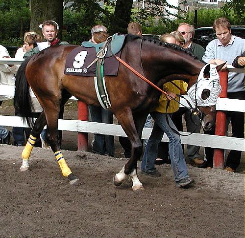Hvis man skulle sammenligne de andre heste med deres normale opførsel, var READY EDDIE - kom sent i paddocken - meget på tæerne og RAM SINGH var som vanligt meget hård imod sine trækkere. EASY BOY lignede en million og stor og magtfuld ser han ud.