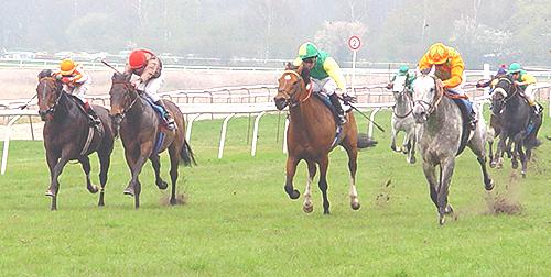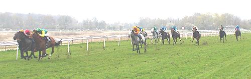 Allerede ind i opløbet var der kun fire heste i løbet og foran var JUBILATION - MAGIC FACT og BINARY FILE allerede arrangeret i en indbyrdes kamp, som den sidstnævnte så ud til at have fordelen i, men lidt efter nærmede den - "grå skygge" - sig meget hurtigt.