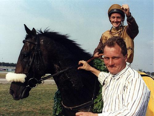 PERSIAN CONSENT (Persian Bold - Gracious Censent/Prince Regent) og en vis ung Hr. Poulsen efter sejren i Fynsløbet 1990. Det er Niel Grant i sadlen.