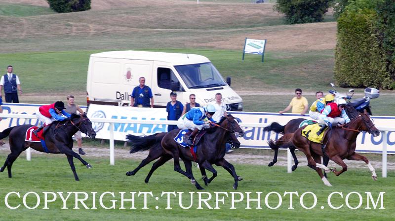 Foran kæmpede ALMERITA stadigvæk heroisk og de andre havde svært ved at få fat i hende, men Miguel Blancpain havde fået LAVEROCK op i top gear og så lynende farlig ud udvendigt og parret var nåede frem i spidsen da både ALMERITA og ikke mindst LORD OF ENGLAND leverede et kontra angreb på franskmanden, som bevirkede i, at jockeyen i form Andrasch Starke, kunne bringe den Mario Hofer trænede hingst først over stregen, til en forholdsvis sikker sejr, før LAVEROCK der akkurat holdt andenpladsen før den flot fightende ALMERITA og med FIGHT CLUB et hoved væk på fjerdepladsen.