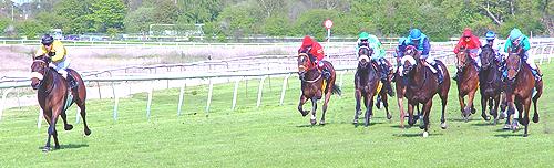 Det var Århus vinderen TASMANIA DREAM (Final Appearance) som førte feltet an og lignede måske også en vinder ind i opløbet, men den gik helt i stå, hvorefter SANDY LANE (Dolphin Street) dukkede op på scenen.