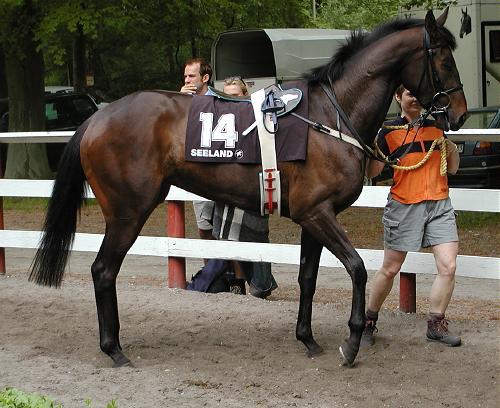 CHANTELLE Hun er en rigtig god hoppe som har sin egen aktion imod sig og banen i dag var absolut ikke nogen hjælp for hende. Jeg har bange for, at vi desværre aldrig får set hendes virkelig klasse, idet aktionen er ineffektiv som den er. Selv om det er meget tidligt i hoppens liv, kan jeg ikke lade være med at tro på, at hun bliver en kanon avlshoppe senere hen.
