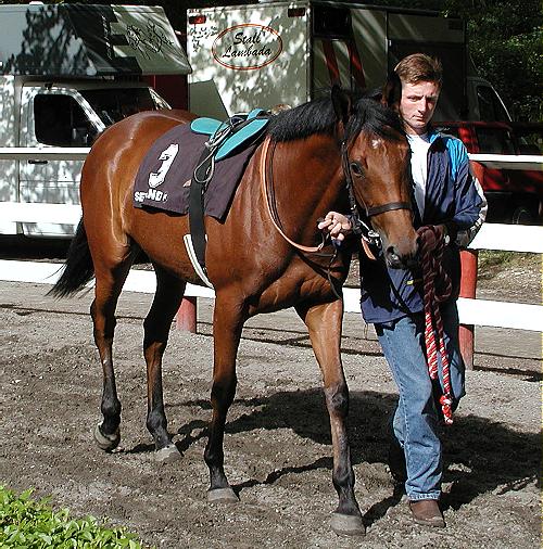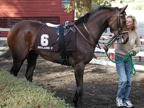 WOLFHOUND datteren er en rigtig lækker hoppe, men hun ser ikke ud til at have udviklet sig meget under vinteren. Jeg er samtidig lidt i tvivl om, at CANTEMERLE vil stå distancen under et "true run race", men hun har bestemt hurtigheden i kroppen.