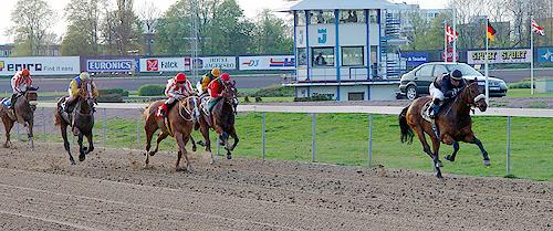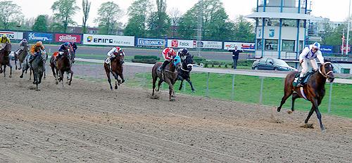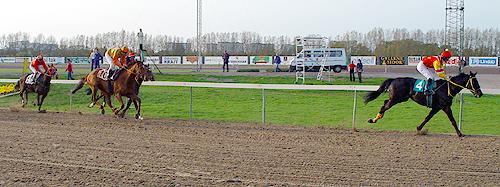 Et rigtig spændende felt så man også i VÅR-HANDICAP over 2400 meter og med 100.000 kroner i "potten" og endnu engang fik vi en mindre overraskelse i GREEN PLAYER (Nicholas Cordrey) der nærmest var overlegen over så gode heste som FINAL CARE og PERUGINOS FLYER.