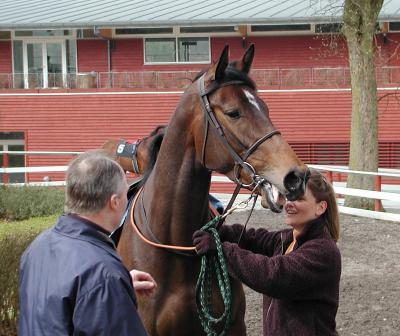 EROS (Kateb - Bourbonville) er en stor dreng som træneren tror meget på og hans forventninger blev vel ikke ødelagt af hestens første præstation på banen. Han ligner noget godt.