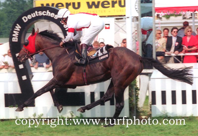 LANDO startede selv treogtyve gange og vandt de ti af løbene og heraf var der syv Gruppe 1 sejre og det er blevet til en samlet præmiesum på € 2.892.803 og den største sejr var nok Tysk Derby i 1993, hvor den slog heste som MONSUN (Königsstuhl) og STERNKÖNIG (Kalaglow), som ovenstående billede viser.