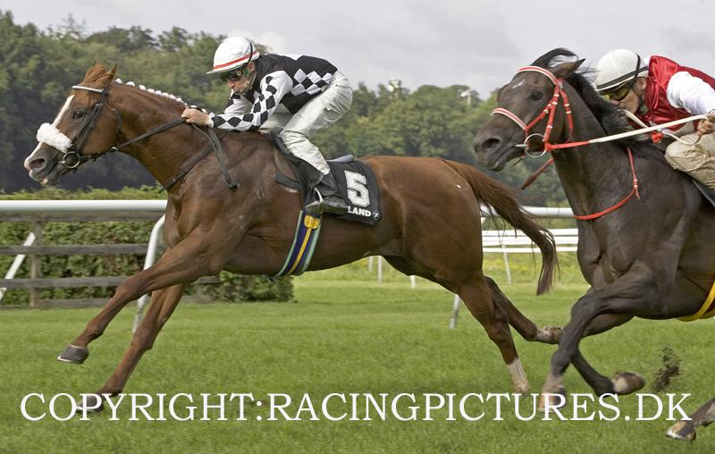 Der er ingen tvivl om, at disse to først placerede hopper vil blive meget svære at slå i Dansk Oaks om nogle ugers tid og det er vel spørgsmålet om hvilken en dem får mest ”fornøjelse” ud af de ekstra 200 meter, men under alle omstændigheder vil MRS MONEYBAGS nok af mest glæde af hårdt tempo på hele distancen, hvorimod at HOT FUDGE vil blive mere og mere giftig, jo langsom tempoet bliver undervejs.