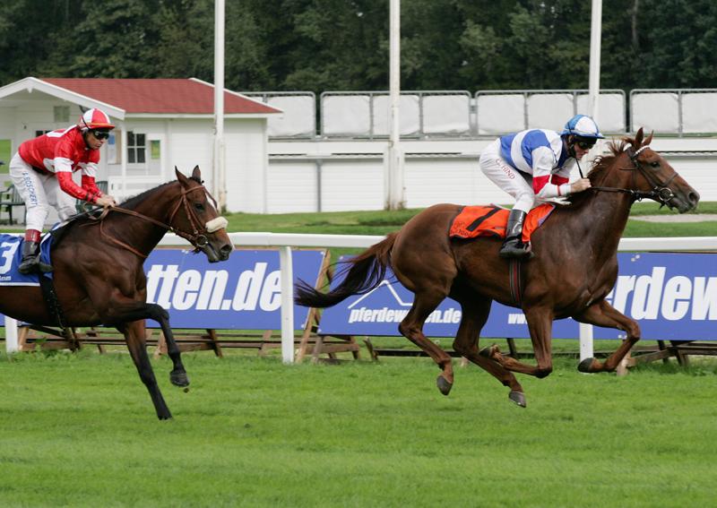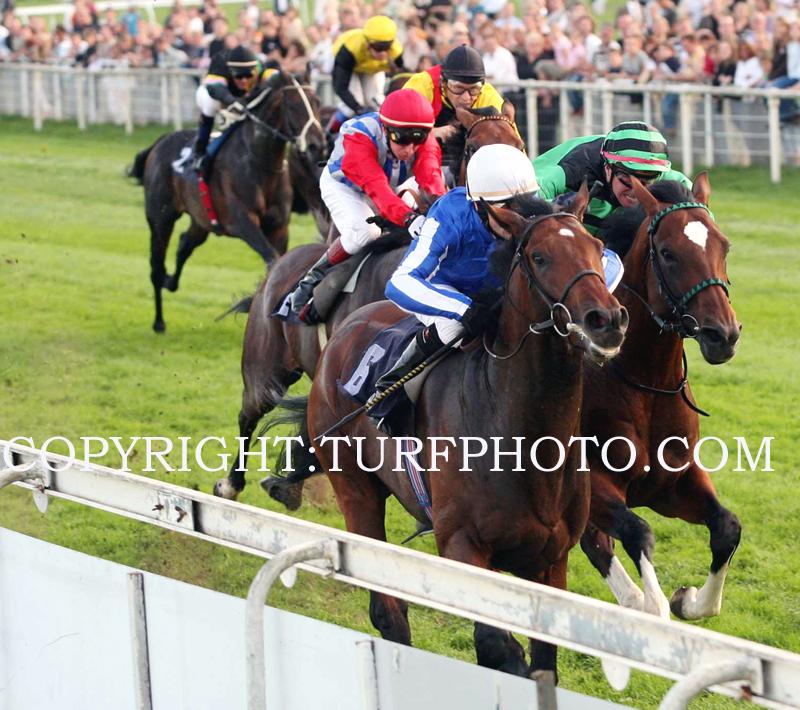 TIBERIUS CAESAR leverede en rigtig flot indsats og førte endnu da der manglede 200 meter, men SANTIAGO ATITLAN (Stravinsky) kom frem indvendigt ved rails og på de sidste hundred meter lykkedes det også for SHINKO`S BEST (Shinko Forest) og FULMINANT (Big Shuffle) at komme forbi den lille tapre svensker, som virkelig så ud til at trives ved at være ”hjemme” i Køln igen.